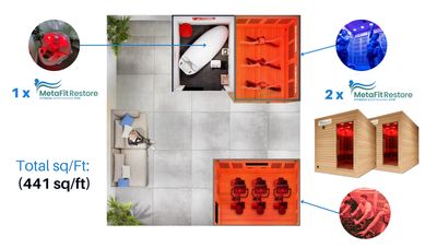 With our MetaFitRestore gym solution we can easily incorporate our functional equipment into a new or existing gym. This adds a significant value by incorporating fitness biostacking modalities to enhance recovery, promote regeneration and deliver a whole body wellness solution. Our designers can help design the perfect solution for your gym and fitness needs. Our MetaFitRestore redfit rooms come in the base or deluxe model.